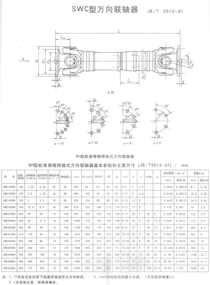 BH系列標(biāo)準(zhǔn)伸縮法蘭式萬(wàn)向聯(lián)軸器基本參數(shù)和主要尺寸