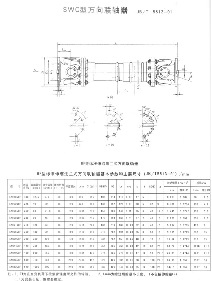BF系列標(biāo)準(zhǔn)伸縮法蘭式萬(wàn)向聯(lián)軸器基本參數(shù)和主要尺寸