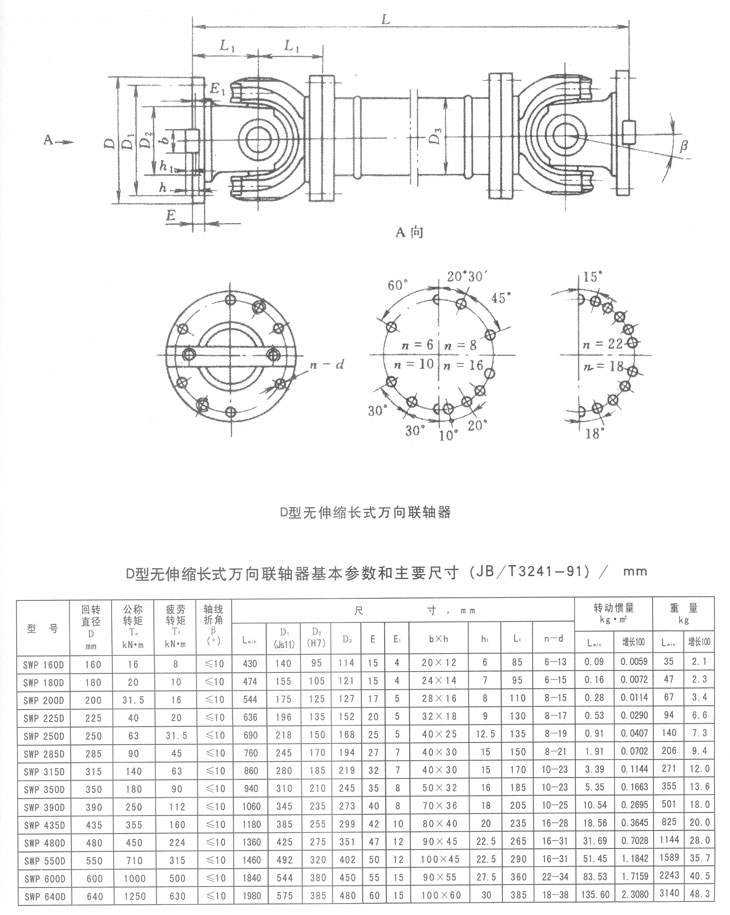 D型無(wú)伸縮長(zhǎng)型萬(wàn)向聯(lián)軸器基本參數(shù)和主要尺寸