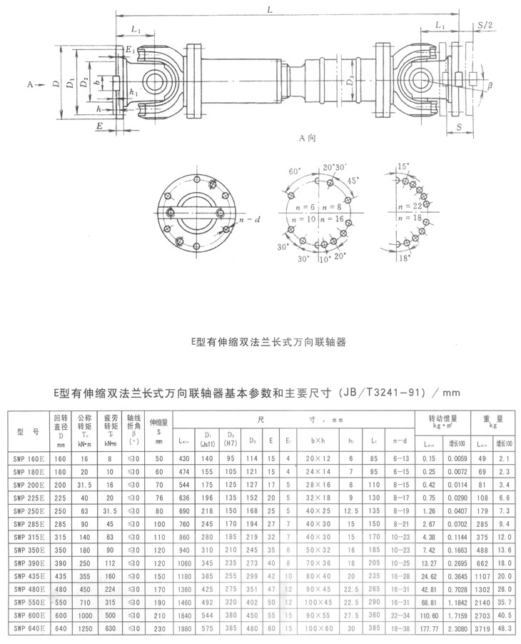 E型有伸縮雙法蘭長(zhǎng)型萬(wàn)向聯(lián)軸器基本參數(shù)和主要尺寸