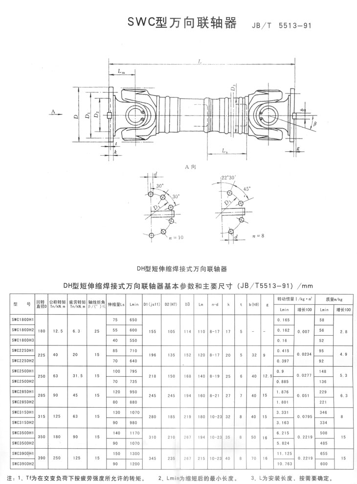 DH系列短伸縮焊接式萬(wàn)向聯(lián)軸器基本參數(shù)和主要尺寸