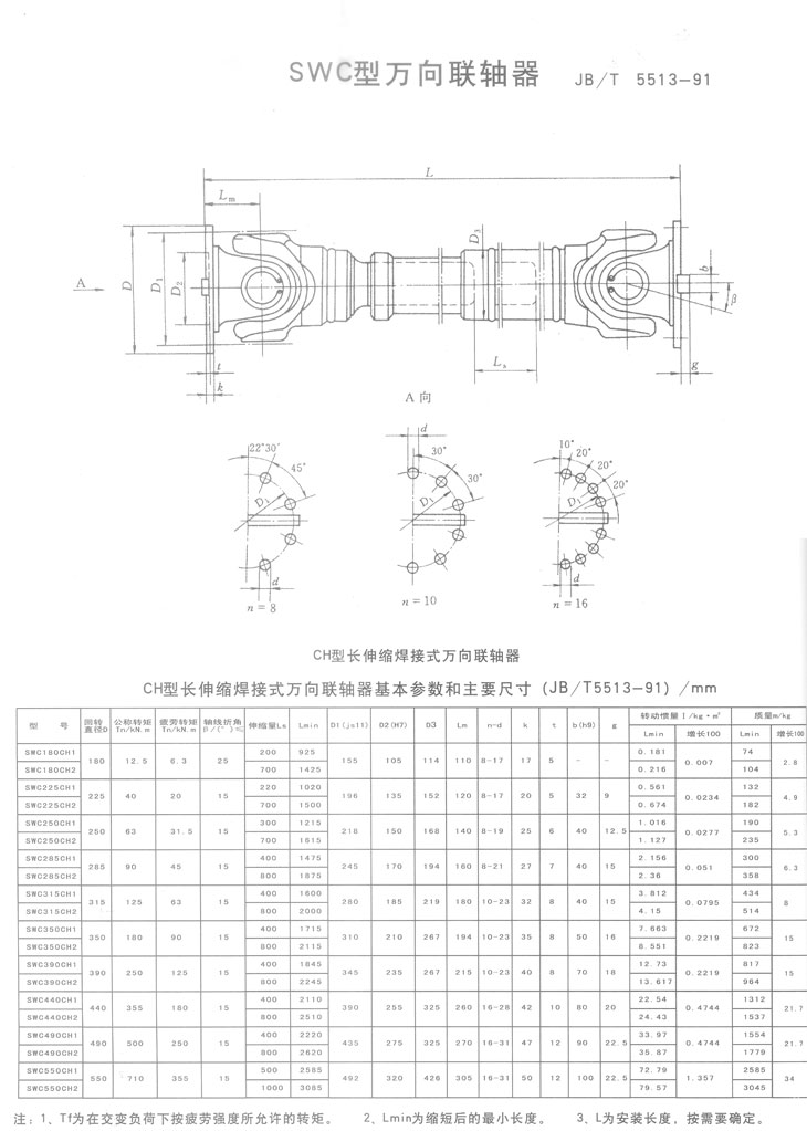 CH系列短伸縮焊接式萬(wàn)向聯(lián)軸器基本參數(shù)和主要尺寸