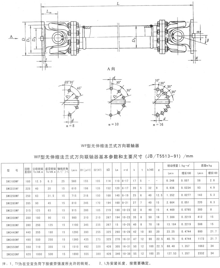 WF系列無(wú)伸縮短式萬(wàn)向聯(lián)軸器基本參數(shù)和主要尺寸