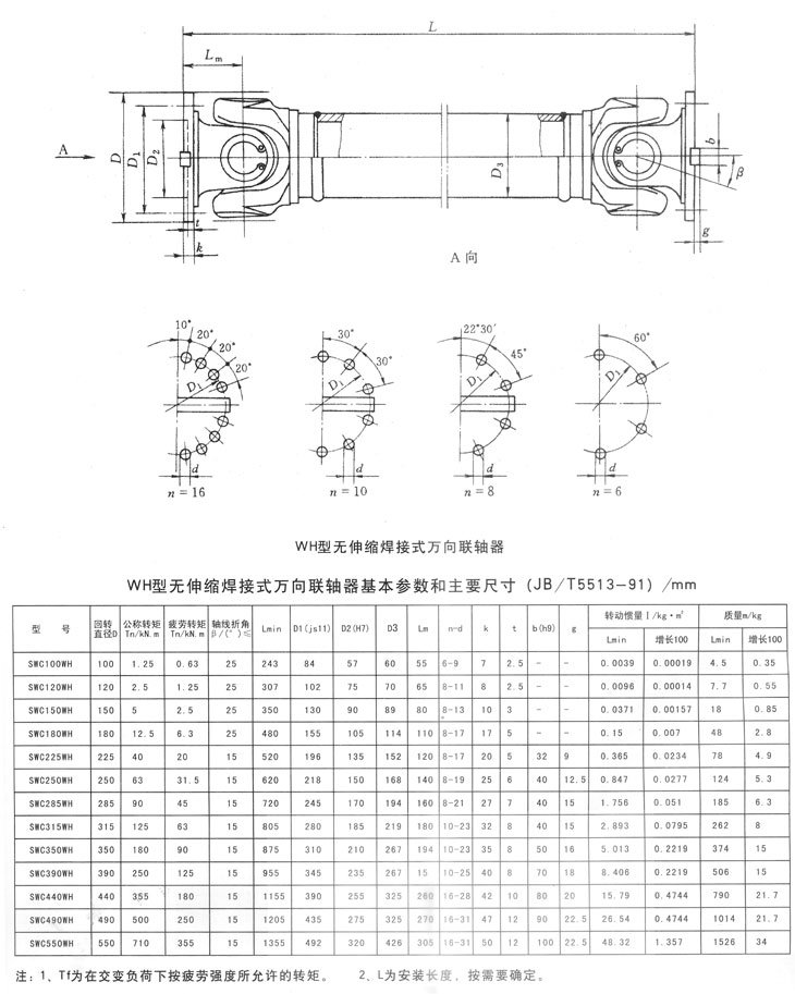 WH系列無(wú)伸縮短式萬(wàn)向聯(lián)軸器基本參數(shù)和主要尺寸