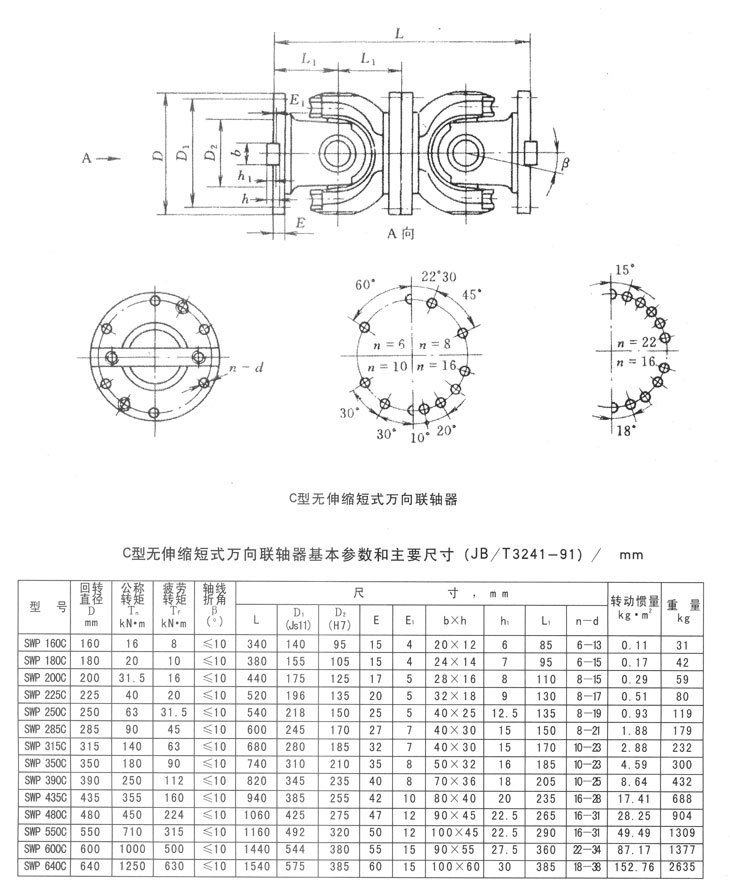 C型無(wú)伸縮短型萬(wàn)向聯(lián)軸器基本參數(shù)和主要尺寸